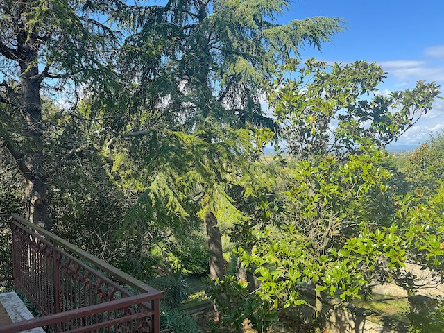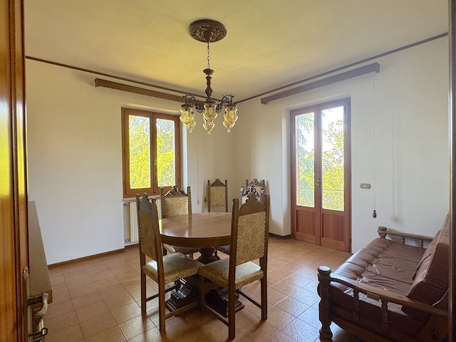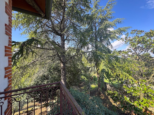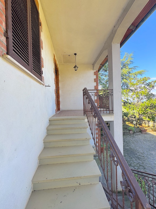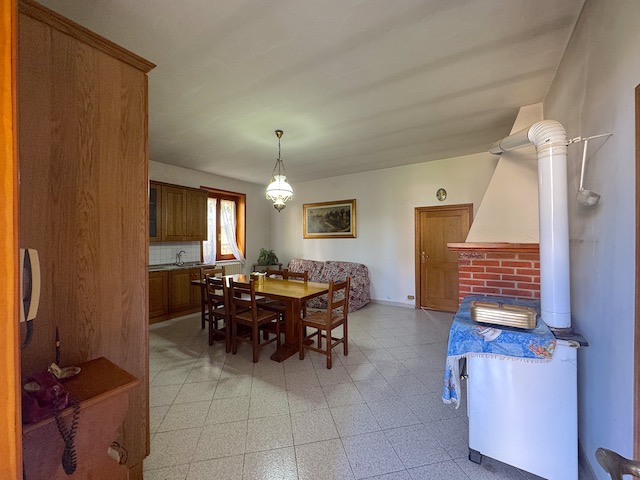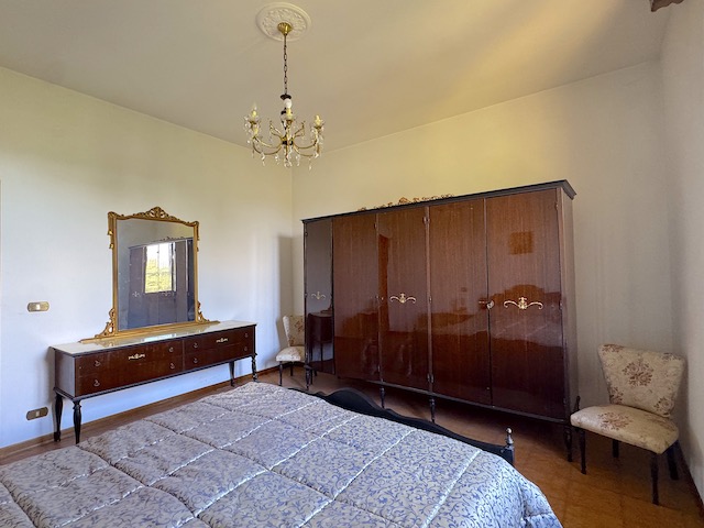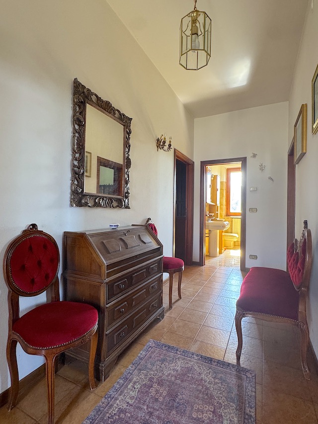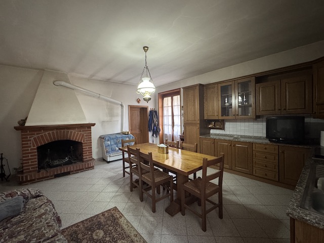 Salendo al primo piano, l'ingresso è caratterizzato da un balcone che si affaccia sulla campagna circostante. Qui si trovano tre camere da letto, di cui una con accesso diretto a un balcone privato. Il soggiorno, luminoso e accogliente, dispone di un secondo balcone rivolto verso il giardino, mentre la cucina è dotata di un ulteriore balcone. La sala da pranzo con camino aggiunge un tocco di calore all'ambiente, completando così un'atmosfera ideale per una grande famiglia.
